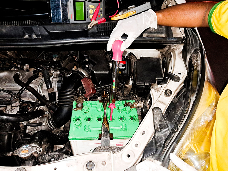 - প্রতি মাসে ব্যাটারী পরীক্ষার সময় বিশুদ্ধ ডি-মিনারেলাইজড ওয়াটার (ব্যাটারীর পানি) ব্যবহার করুন।